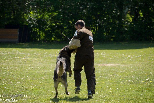 Quincy mit Herrchen in Eschenbach | | Quincy bei der Arbeit |